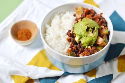 Temps de préparation : 20 minutes Temps de cuisson : 5 minutes Quantité : 1 bol > INGRÉDIENTS : Pour le riz de chou-fleur : 150 g de chou-fleur cru 50…
