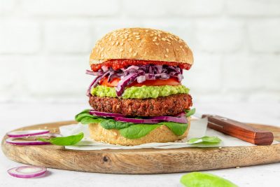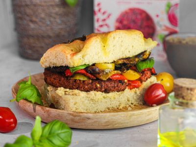 Temps de préparation : 15 minutes Temps de cuisson : 10 minutes Quantité : 1 burger > INGRÉDIENTS : Pour les légumes grillés : 1/4 de courgette 1/4 de poivron…