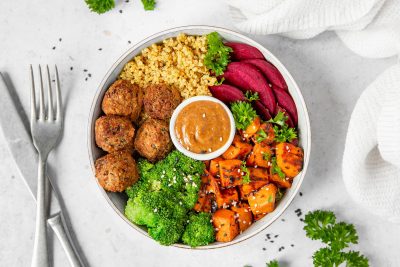 Recette : Buddha bowl coloré aux boulettes de lentilles vertes HARi&CO