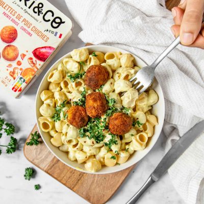 Recette : Mac & cheese aux boulettes de pois chiches HARi&CO