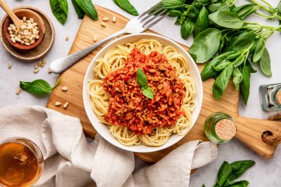 Revisitez vos classiques : les spaghettis bolognaise, version veggie avec notre haché végétal ! Toujours aussi délicieux.