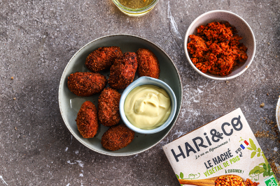Des croquetas espagnoles version veggie avec notre haché végétal et un coeur coulant à la mozzarella !