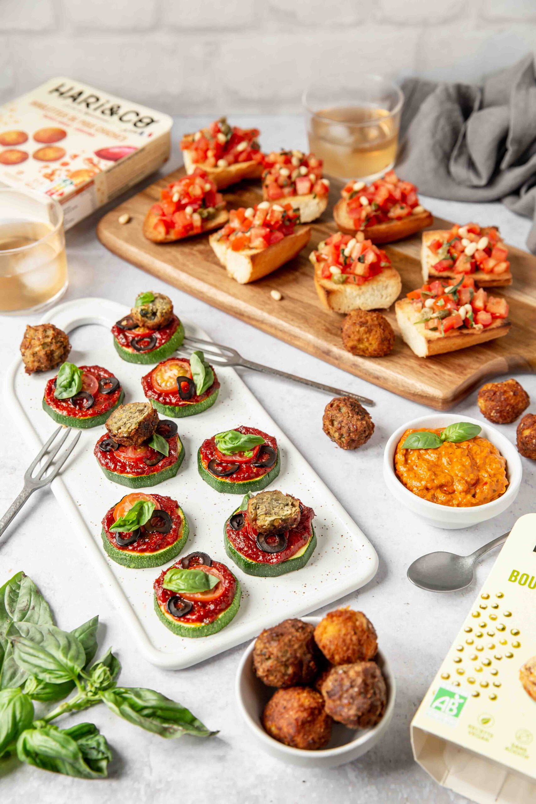 Planche apéro avec les boulettes de lentilles vertes HARi&CO