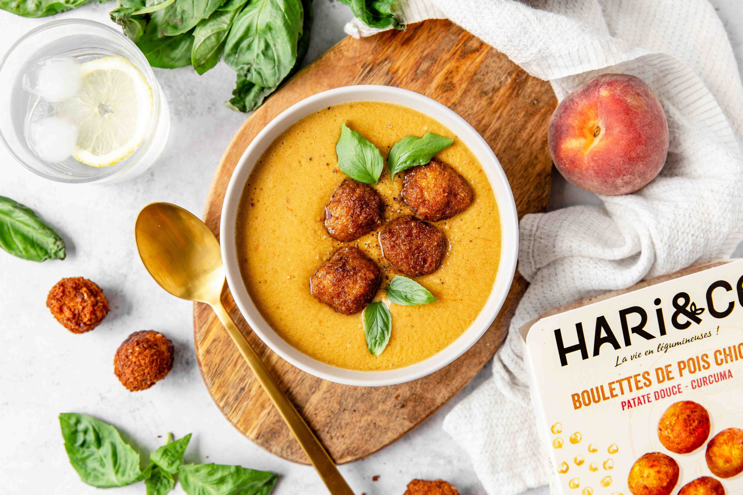 RECETTE : Gaspacho de melon avec les boulettes de Pois chiches HARi&CO